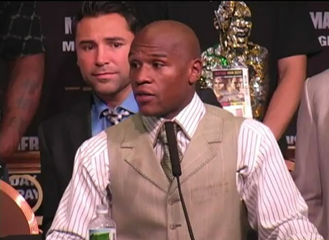 The problem is that Mosley is older so you would hate to wait. Its just a bad catch 22. Again, it would be different if people gave him extra credit for beating a Mosley or Cotto but they act like he is the same size and should beat them. Theyre not. I heard someone say that Floyd was 161 on fight night. Thats a joke. If Floyd was 161 then Mosley was 180 in that presser and Oscar was over 190. Thats how much bigger they looked than Floyd