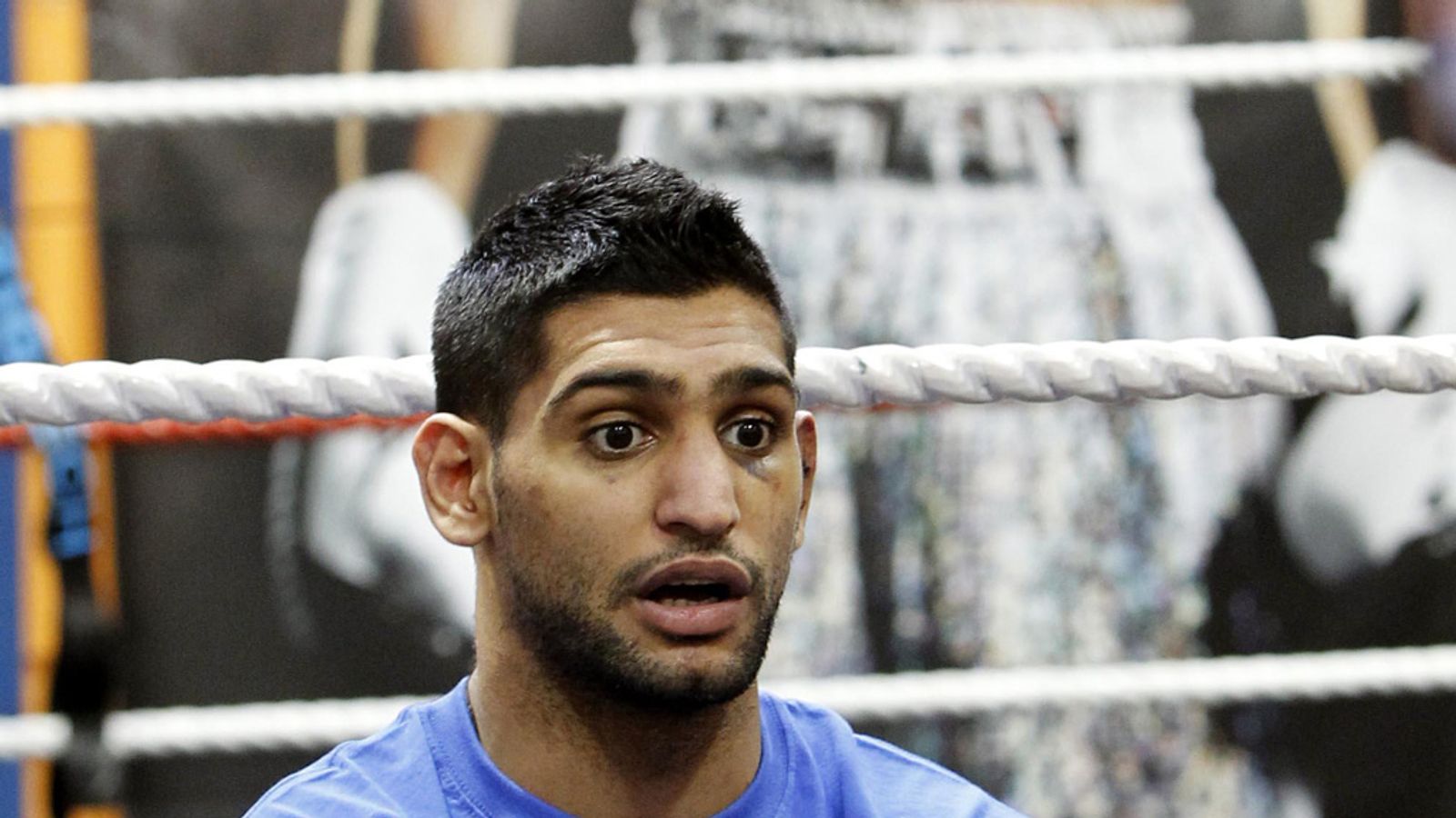 "Amir Khan says he had to keep pushing Lamont Peterson away because he was constantly being headbutted."