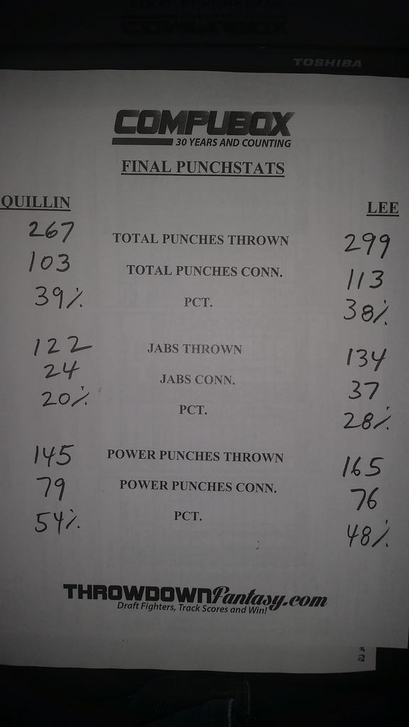 In the Murray fight, Golovkin LANDED 292 punches out of 816 thrown. So he landed more than Quillin threw over 12 rounds and almost the same number as Lee threw.