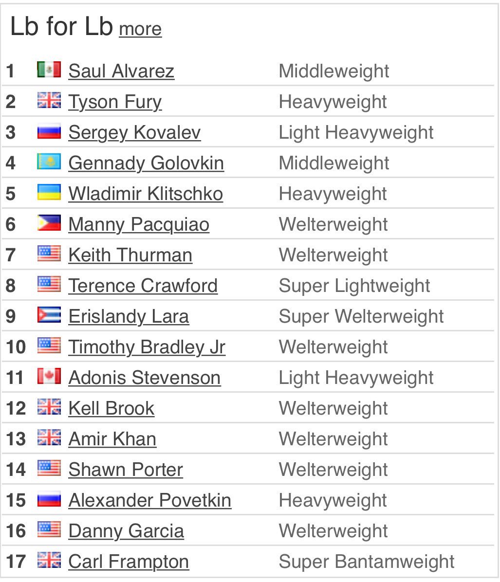 canelo is a consensus top 10 pound for pounder... he's on transnational, ring, etc