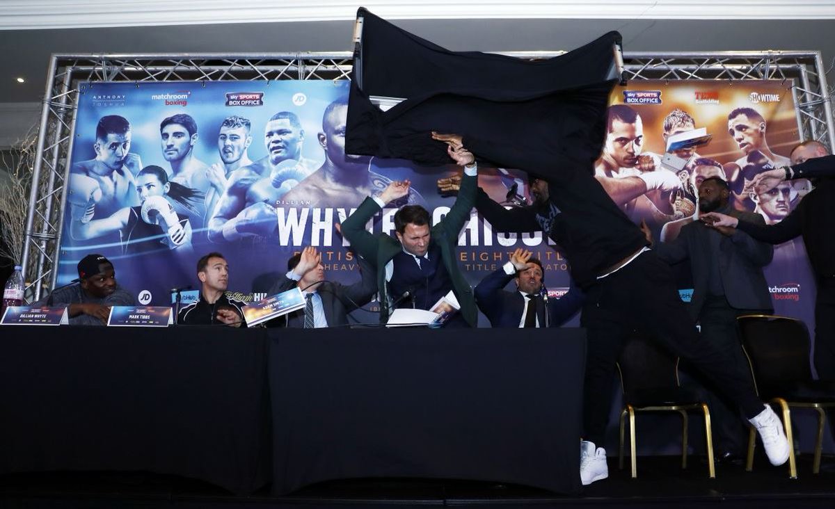 Chisora throws table at Whyte in todays presser