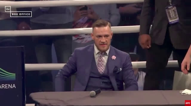 Conor taps out after Floyd submits him via verbal assault (gif)