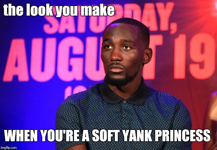The Bogan's promoter, trainer, and the Bogan himself are going to be embarrassed when he's dismantled by Crawford. Then what will they have to say? Bad night? Ring too large? Too small? That time of the month? Had the trotskis? Slipped on banana peel on way to ring? Wife gave him accidental BJ just before fight? Cuz there will be a skidillion excuses one right after another. This bogus Bogan Horn clown is such a flash-in-the-pan loser it's actually embarrassing to the sport.