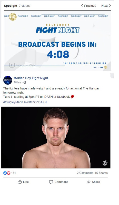 Quigley Vs someone coming off a ko loss and who was a career welterweight (they are fighting at 164 tonight) and has no defense.