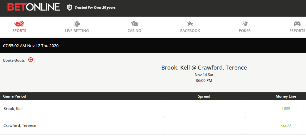 LATE BREAKING EDIT: Odds spiked back up, now 22-TO-1 that Crawford wins.