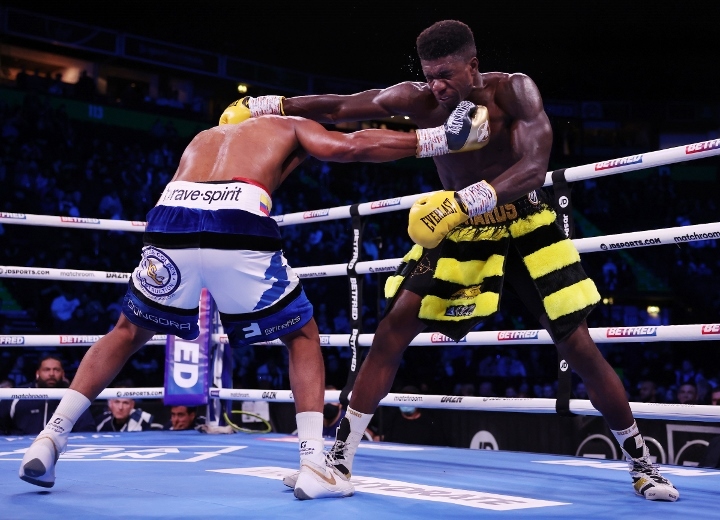 Gongora was having a lot of problems landing on the quick moving Richards, who was using his jab, quick punches and circling around when Gongora would attempt to land punches. Gongora didn't really pick up the pace with his inside work until the ninth round - and that may have been too little too late.
